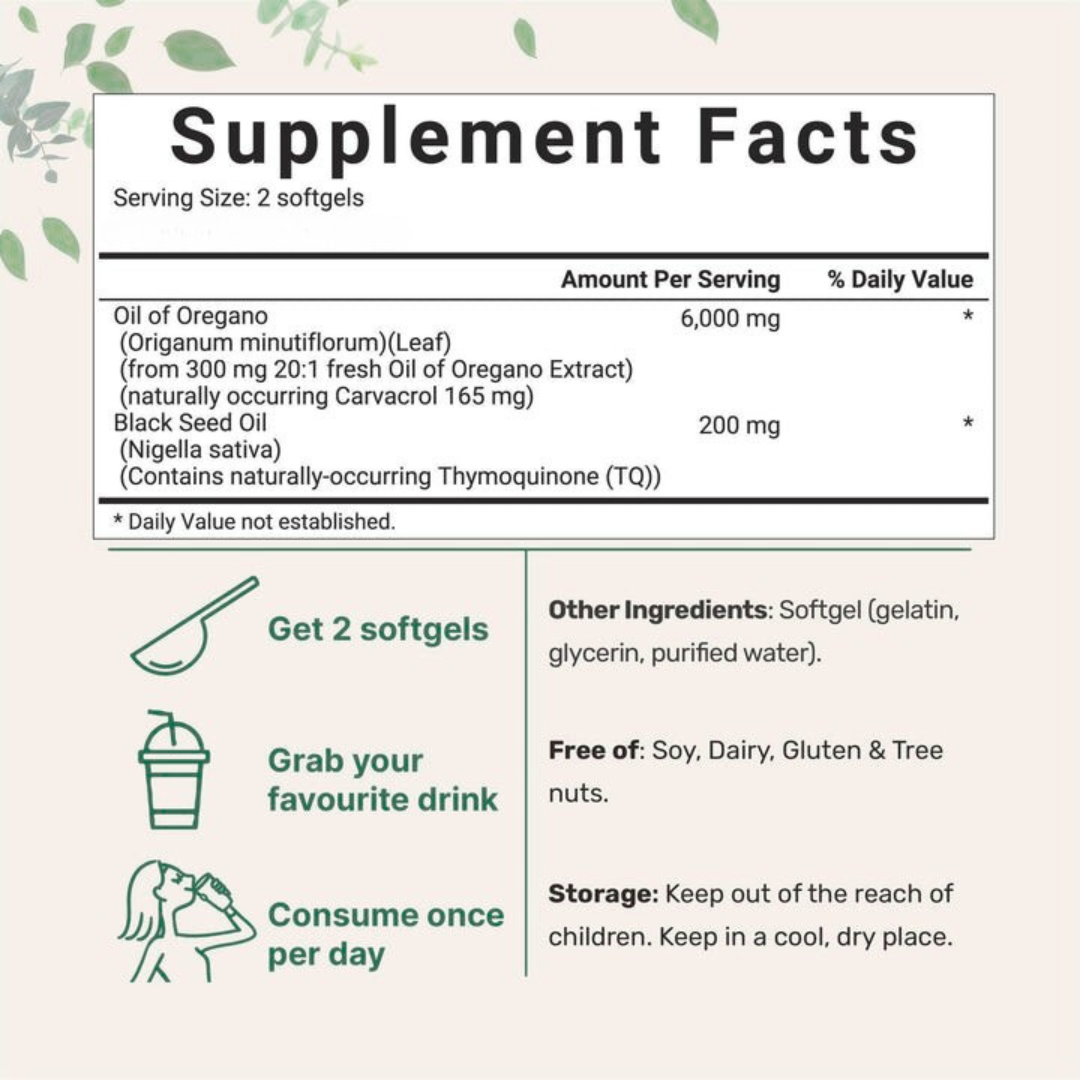 Our Oregano Oil with Black Seed Oil Softgels are ideal if you: